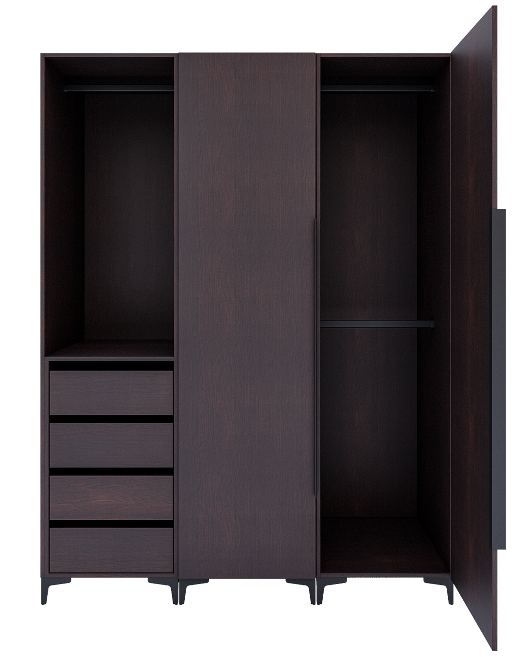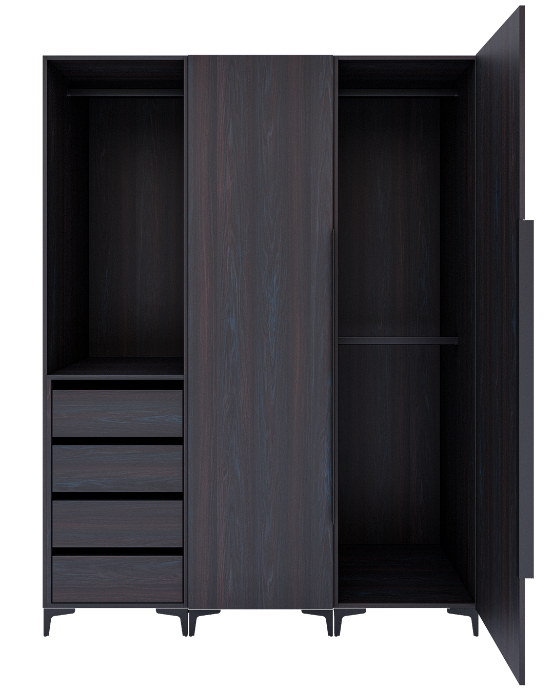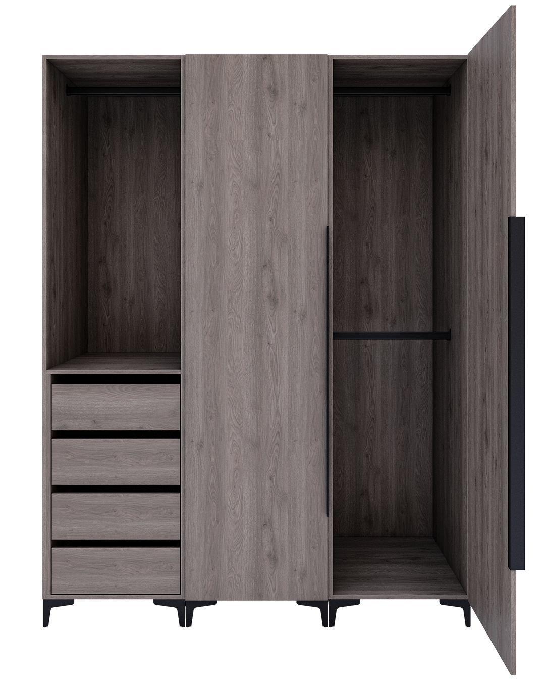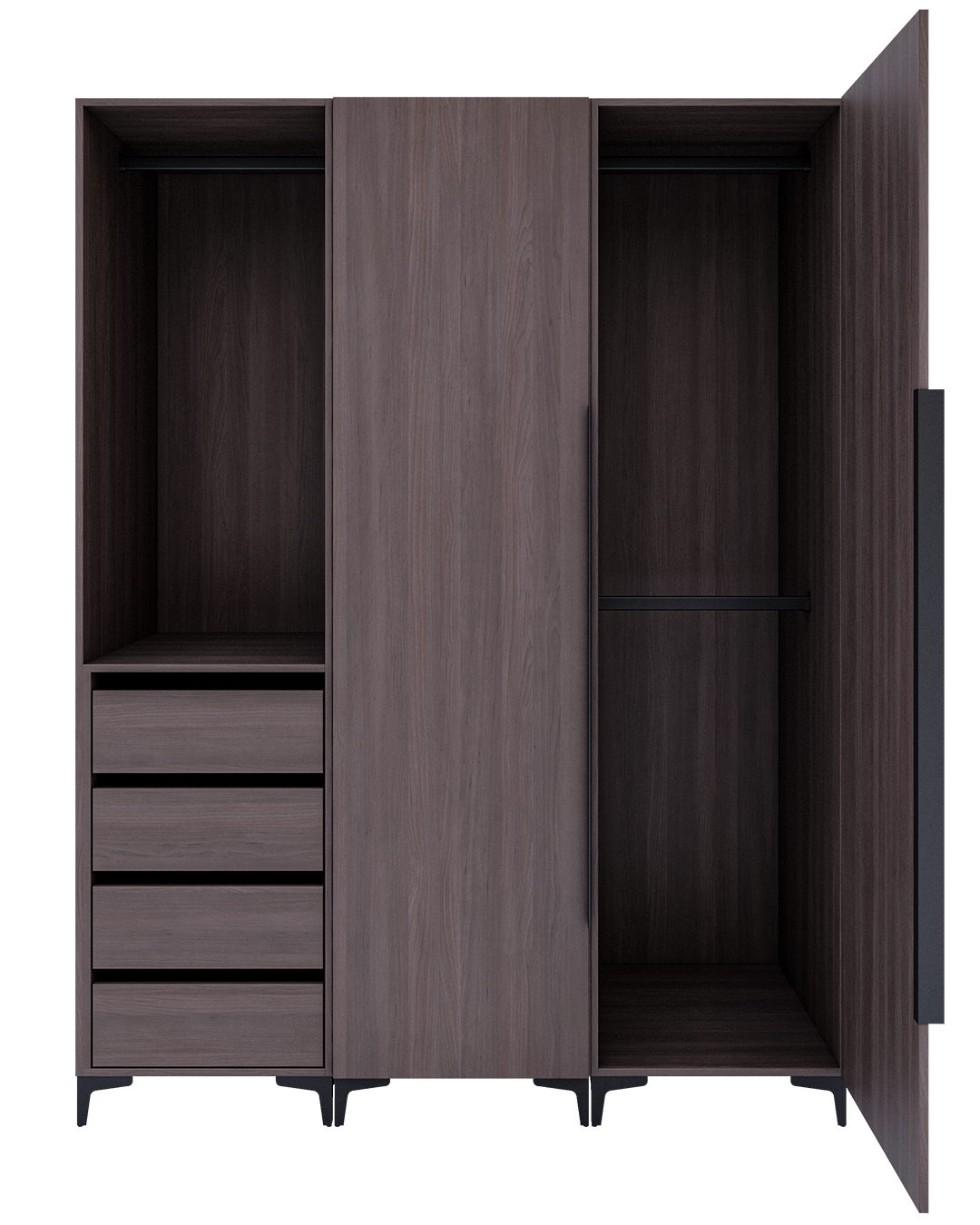 - Diseño maderado en una conjugación de tonos marrón oscuro grisáseo y detalles de luz en tonalidades frías que lo convierten en un diseño elegante y moderno.