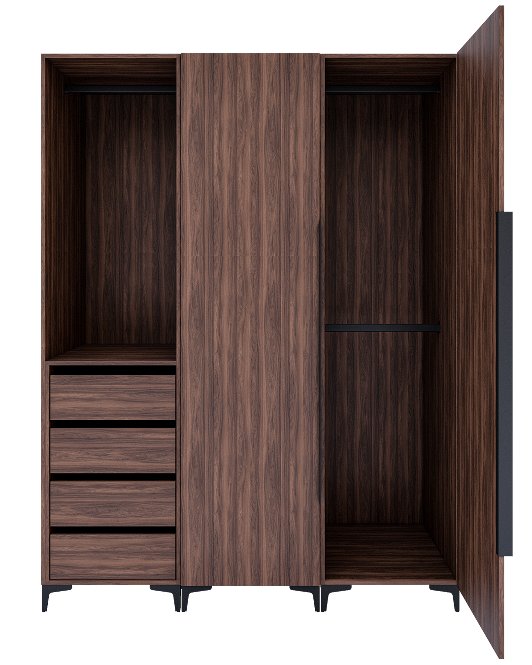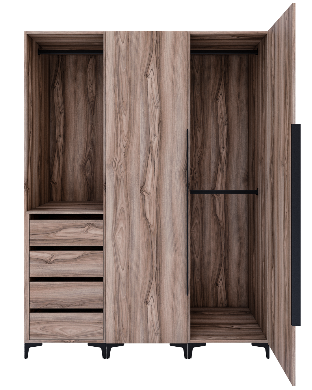 - El clásico nogal con vetas lineales en tonalidades marrones claras que le dan un movimiento natural al diseño.